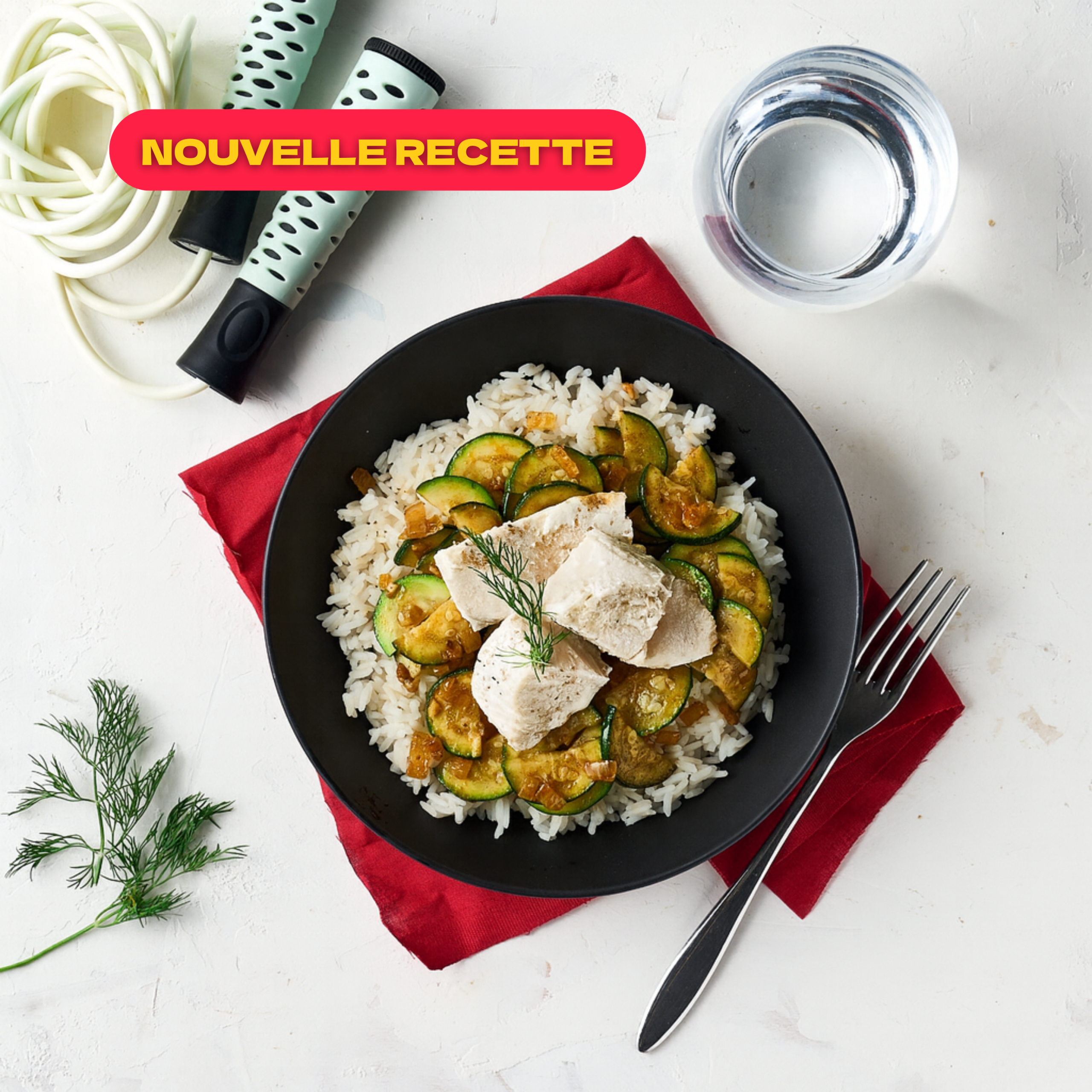 Un filet de poulet pané croustillant, enrobé d’une chapelure dorée au Parmefit MyFitCheese®, le fromage hyperprotéiné sans matière grasse. Servi avec un riz basmati léger et une poêlée de courgettes fondantes, ce plat allie équilibre nutritionnel et plaisir authentique.